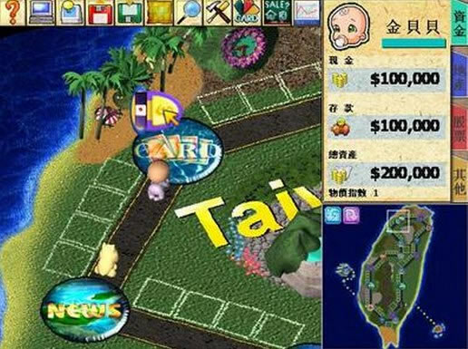 为了兼顾游戏运行的流畅与画面精致,《大富翁4》甚至把以往的3D即时贴图以顺序性3D图像代替,使玩家感到耳目一新。此外,行走路线设计摒弃了原来中规中矩的四方型,改为45度俯角视窗,通过八组可转动的镜头视角,可以一览丰富多彩的画面。