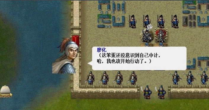 开始曹休中计,城中的敌军混乱、麻痹。第10回合结束,臧霸率军出现在左上角。