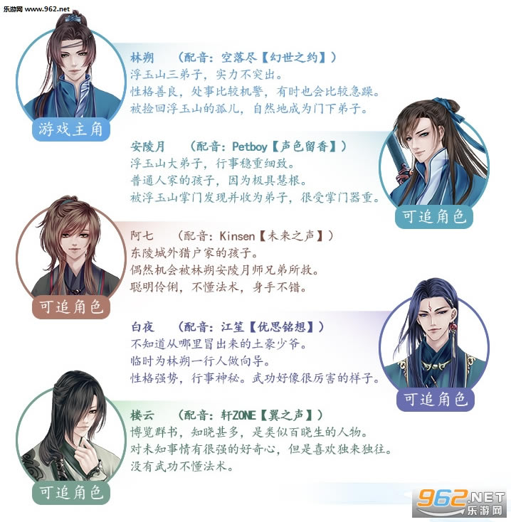 国产古风类型的玄幻AVG文字冒险游戏,主打女性群体(BL),卖点就是各种各样的美男子以及全程配音。故事主要讲述了几个美男子之间的感情纠葛,由于小编是直男,只是初略的关注了下,也不好评价,但就人设画风以及配音、BGM来说,都是上乘之作,推荐给各位腐女妹子。