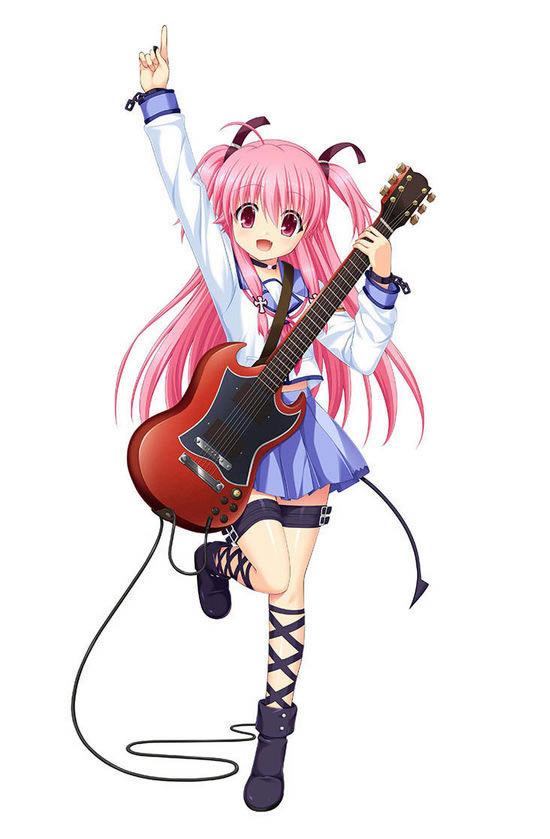 在死后世界中的人气乐队“Girls Dead Monster”通称GDM中担任主唱和节奏吉他,同时也兼任作词和作曲。